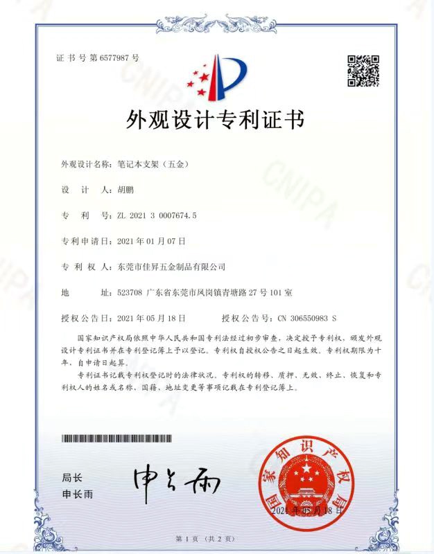 ◆ 專利權(quán): 擁有8項(xiàng)由國家知識產(chǎn)權(quán)局頒發(fā)的外觀設(shè)計(jì)專利證書